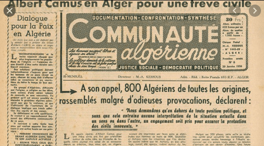 17. 32ème article dans L’Express : Le parti de la trêve. « On me dit qu’une partie du Mouvement arabe propose une forme d’indépendance qui signifierait, tôt ou tard, l’éviction des Français d’Algérie. Or, par leur nombre et l’ancienneté de leur implantation, ceux-ci constituent eux aussi un peuple, qui ne peut disposer de personne, mais dont on ne peut disposer non plus sans son assentiment. »