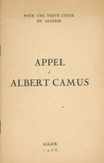 22. Alger. Camus lance un Appel pour une trêve civile dans une salle du Cercle du Progrès à Alger. « Quelles que soient les origines anciennes et profondes de la tragédie algérienne, un fait demeure : aucune cause ne justifie la mort de l’innocent. » Thème récurrent : voir Les Justes et le discours à l’Université de Stockholm, le 12 décembre 1957.